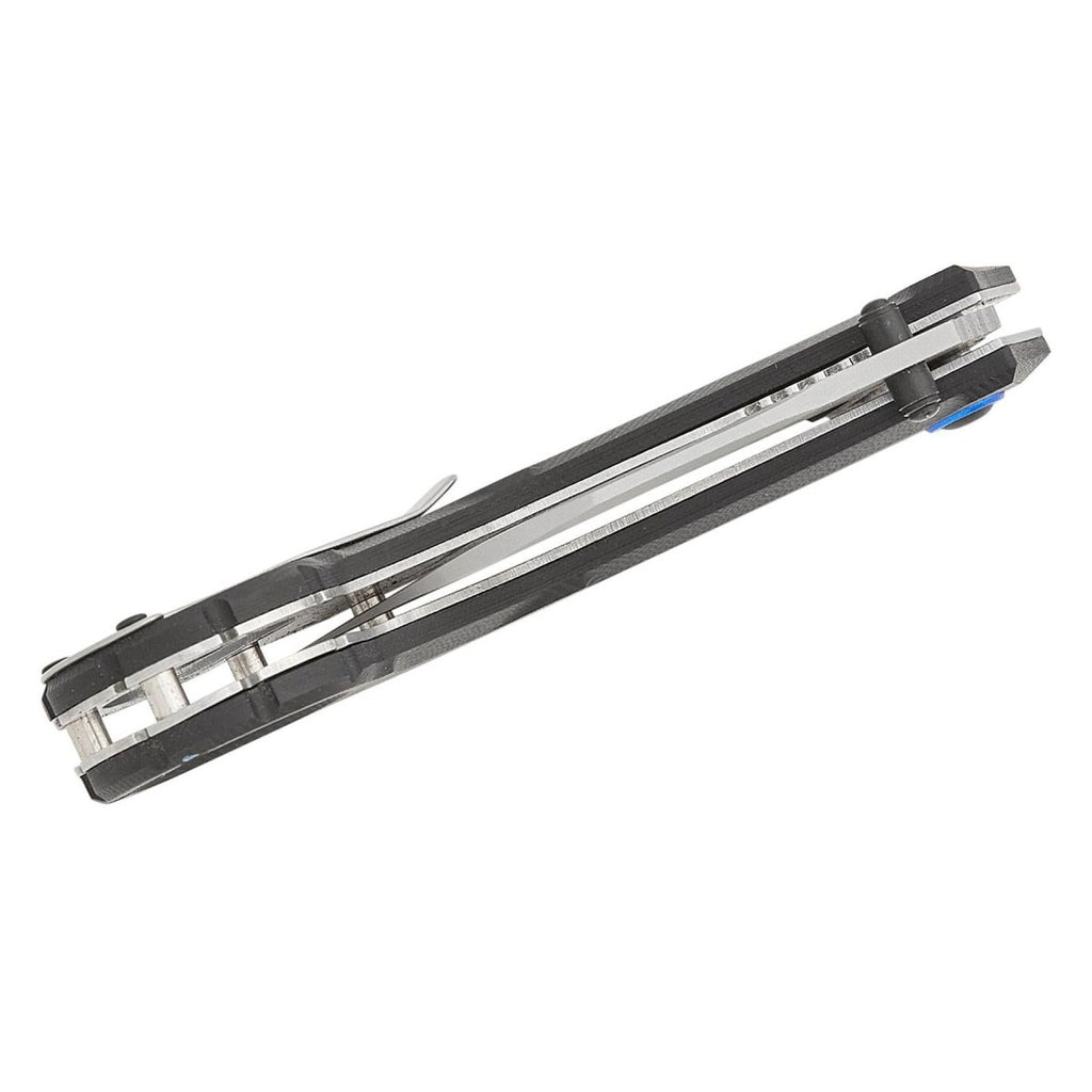 • The G10 handle feels solid and secure in your hand. Textured details improve grip even in wet or stressful situations. Blue accent lines add a touch of modern style, showing that function and design can work together. The liner lock keeps the blade steady during use, while the finger ring provides stability and quick handling.
