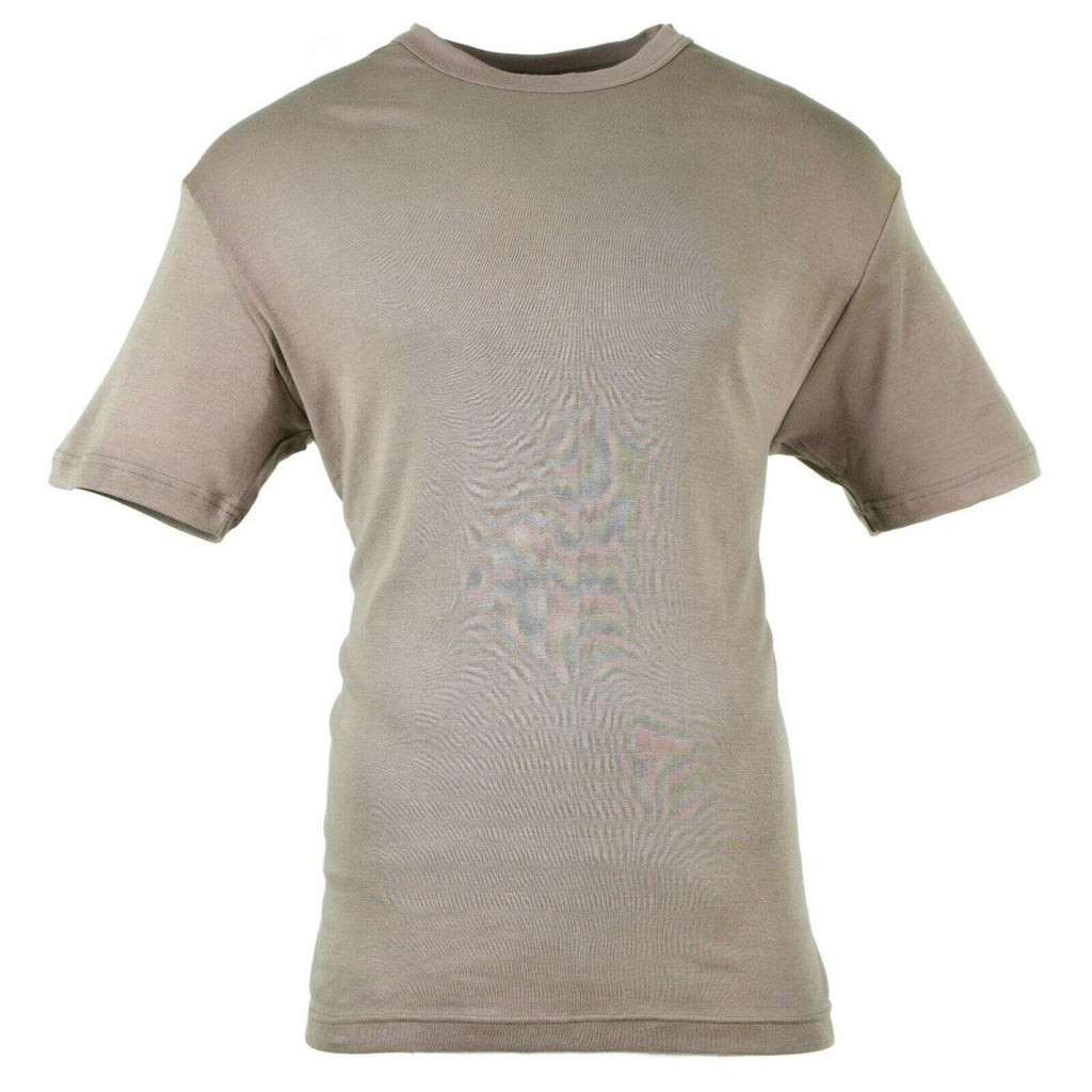 The Genuine Austrian military T-shirt is a khaki colored, cotton shirt with short sleeves. It is designed to be breathable and lightweight for comfortable wear during physical activity.
