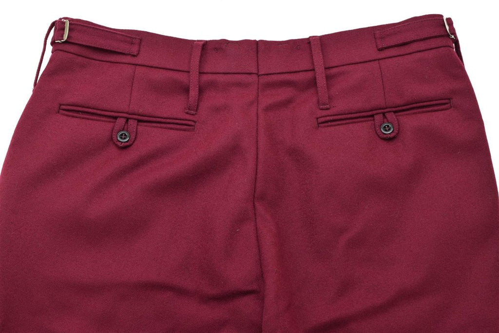 - Enhance your wardrobe with a staple piece that stands the test of time. Embrace the heritage and craftsmanship of British military attire with these exquisite Bordeaux trousers, a symbol of timeless elegance and impeccable refinement.