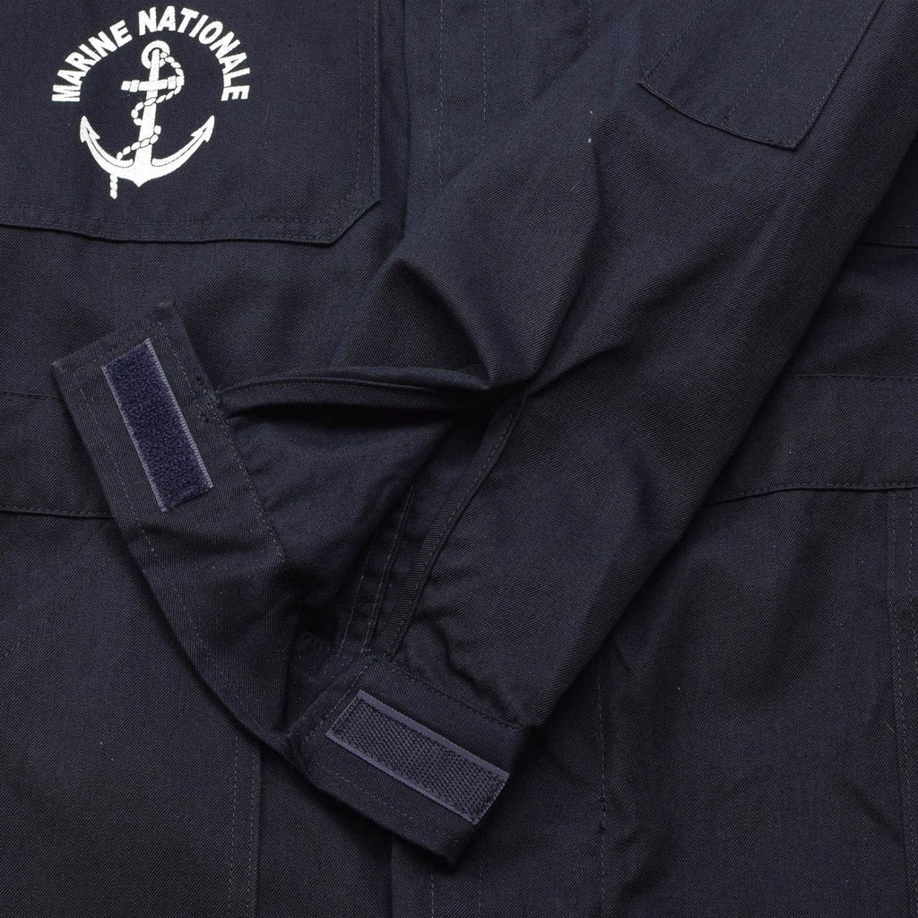 Thermostable Marine Jumpsuit Genuine French Navy Coverall is a highly durable and functional garment designed to withstand demanding maritime conditions. Its sleek dark blue color is a classic representation of naval attire, while the inclusion of reflective bands enhances visibility for safety in low-light situations. The two-way front zipper closure allows for ease of wear and quick ventilation adjustments, making it an ideal choice for the rigors of life at sea. This jumpsuit is a symbol of French naval excellence, combining style, durability, and practicality for those who serve aboard ships and vessels
