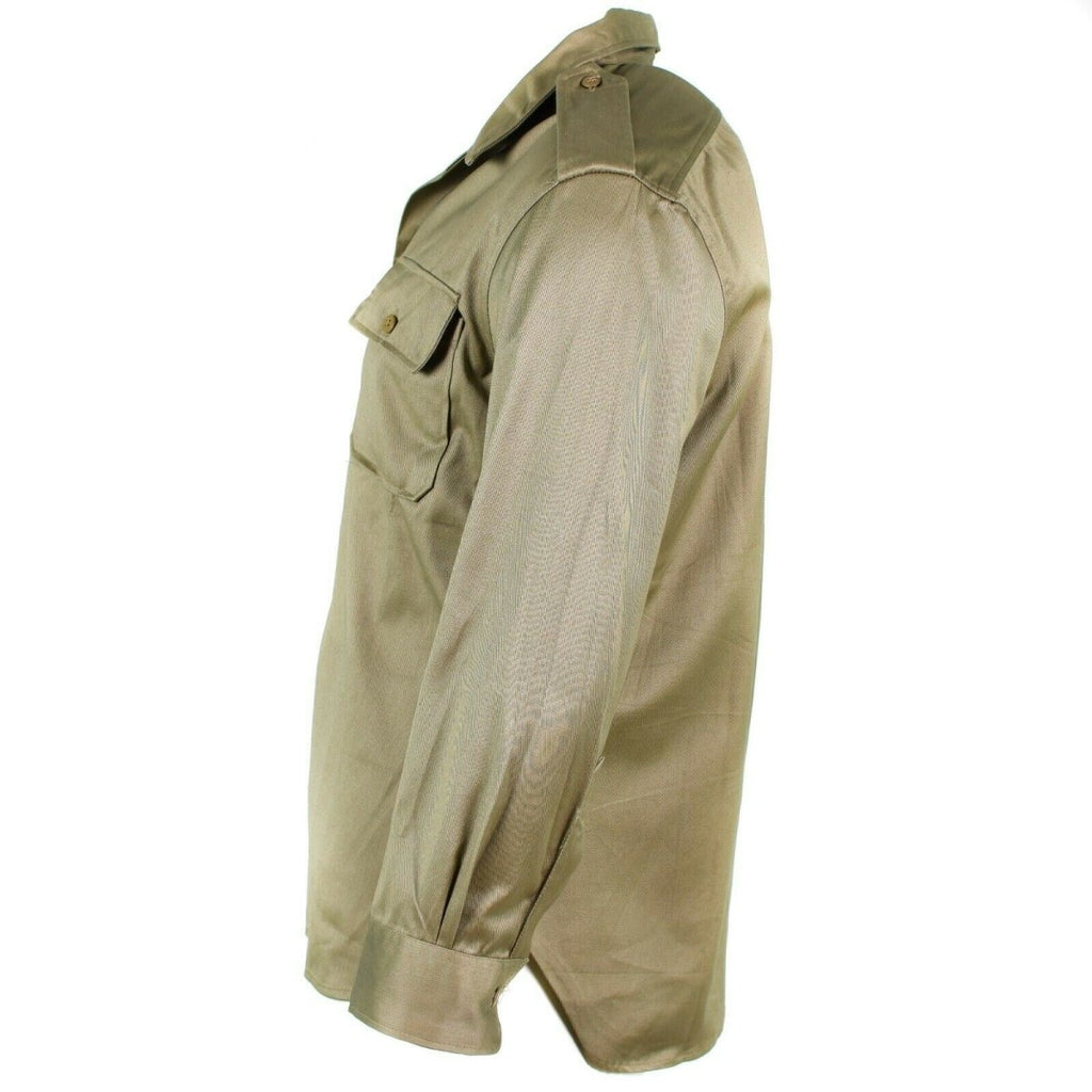 The Genuine Greek Army Shirt Fatigue Dead Stock Chino Khaki Military Jacket embodies Greek military tradition and functionality. It offers practicality and versatility while maintaining a classic and timeless appearance.