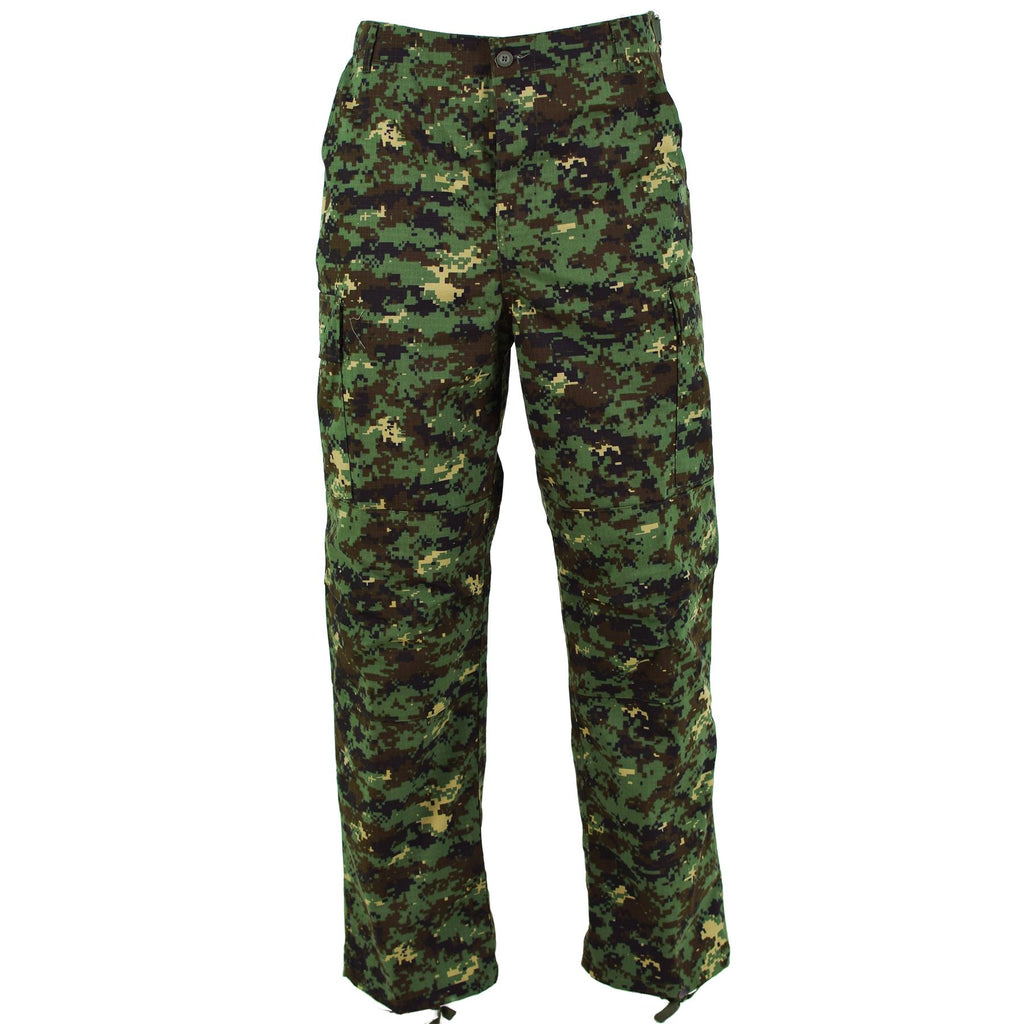 • Therefore, adjustable Waist and Bottoms: Customize the fit with adjustable waist and bottom cuffs for comfort and functionality. Ripstop Durability: Built to resist tears and wear, offering resilience in challenging environments. Reinforced Knees: Extra protection for rough terrains and demanding activities. Material and Pattern: Made from a polycotton blend with jungle camouflage for strength and effective concealment.
