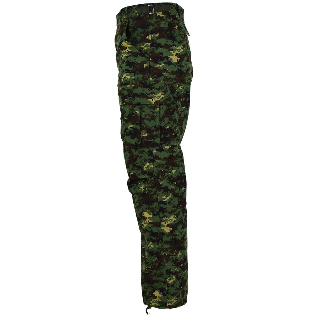 • Also, reinforced Knees: Designed for extra protection and durability, ideal for rough terrains and demanding activities. Material and Pattern: Constructed from a robust polycotton blend with jungle camouflage for strength and effective concealment.