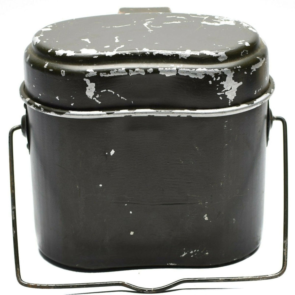 Get the original Romanian Army mess kit. This aluminum military bowler pot is perfect for your outdoor adventures. Made from lightweight aluminum, it's foldable with handles for easy transport. It's also a great vintage piece for your collection. Perfect for camping, hiking or fishing, this pot is a must-have for any outdoorsman.