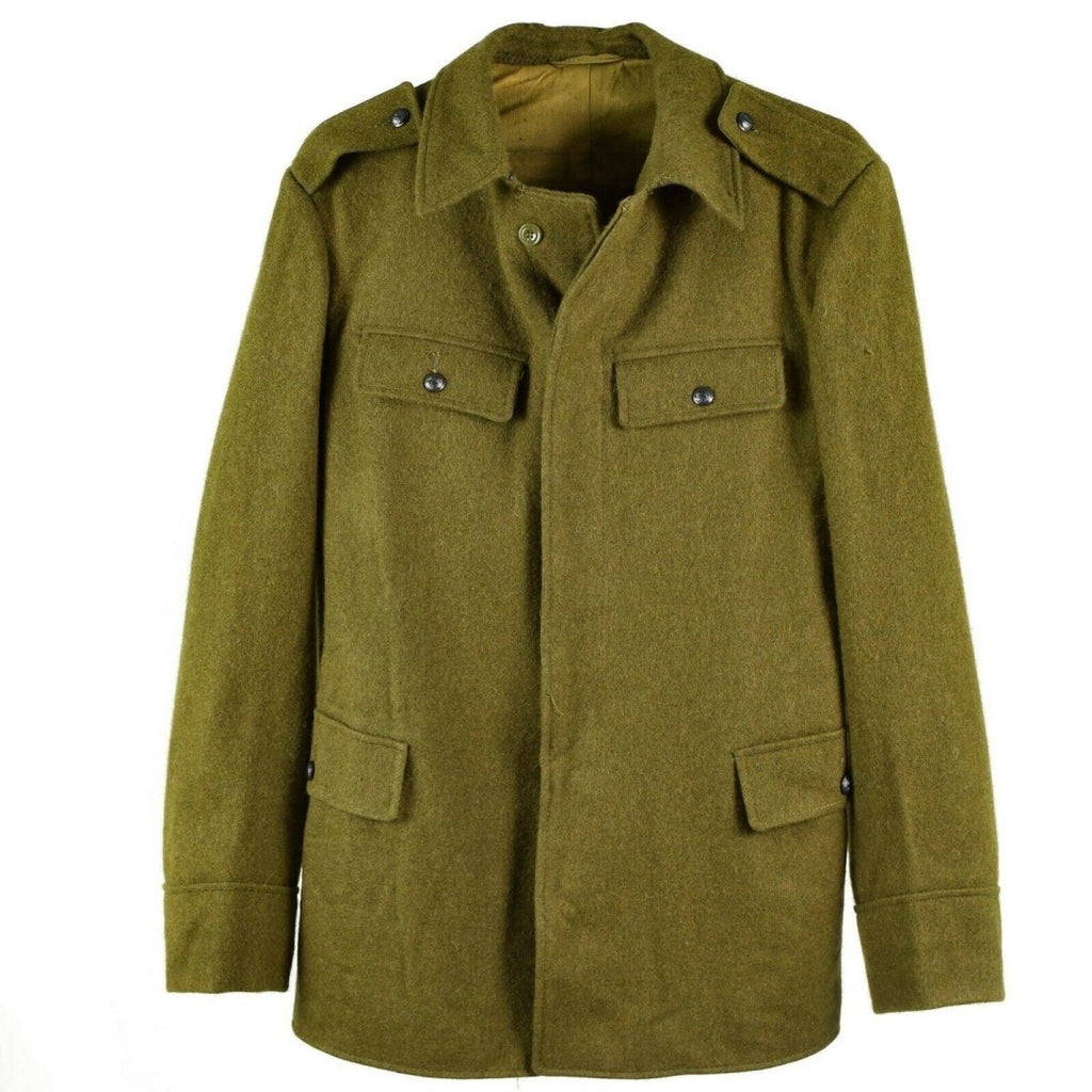 • This wool military jacket has practical features that enhance its value. Equipped with both chest and inside pockets, it gives you plenty of space for your essentials. Whether you’re hiking outdoors or running errands, you can easily store your keys, wallet, or phone. The jacket's wool fabric serves as a natural insulator, making it a reliable choice for colder temperatures.