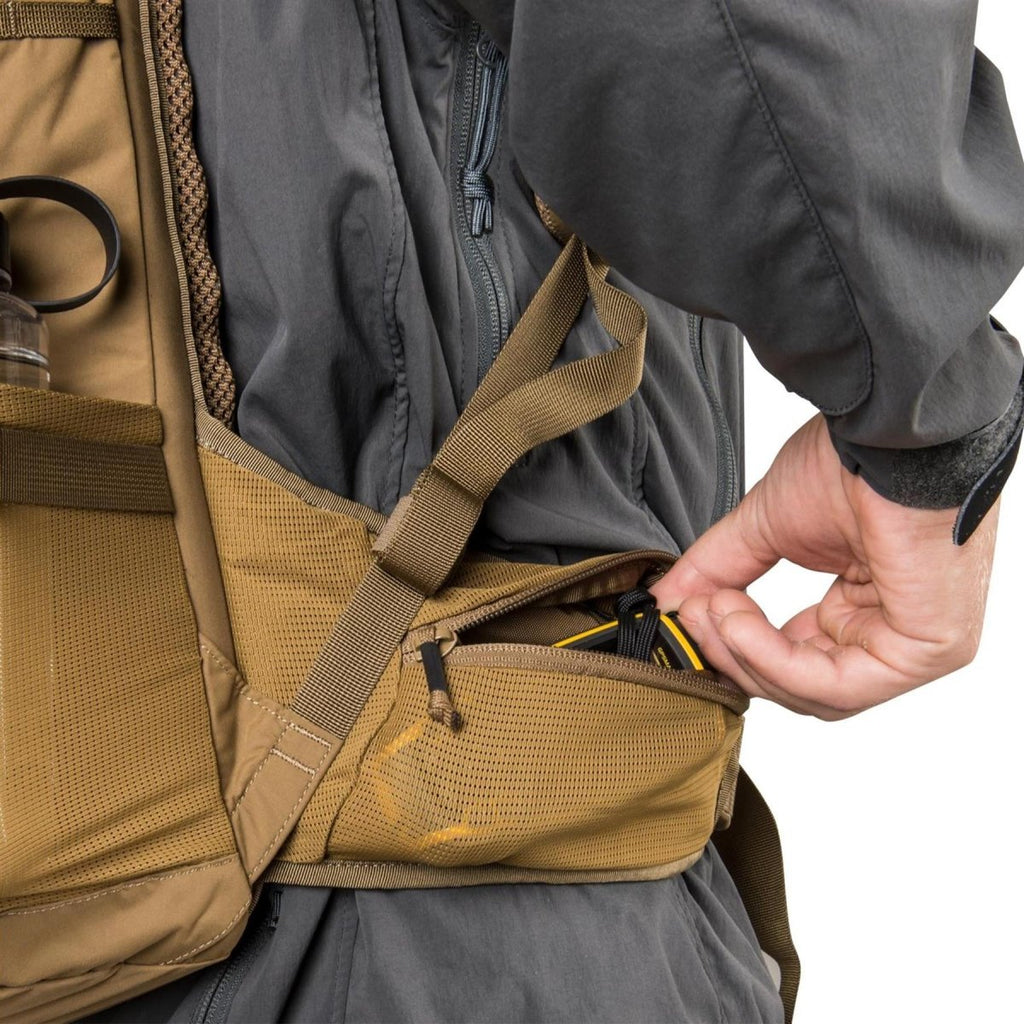 • Mesh pockets on the hip belt are perfect for small items like snacks or keys. An additional pocket keeps your smaller essentials organized and easily accessible. MOLLE Lite webbing on the sides lets you attach extra pouches and accessories, enhancing the backpack’s versatility.