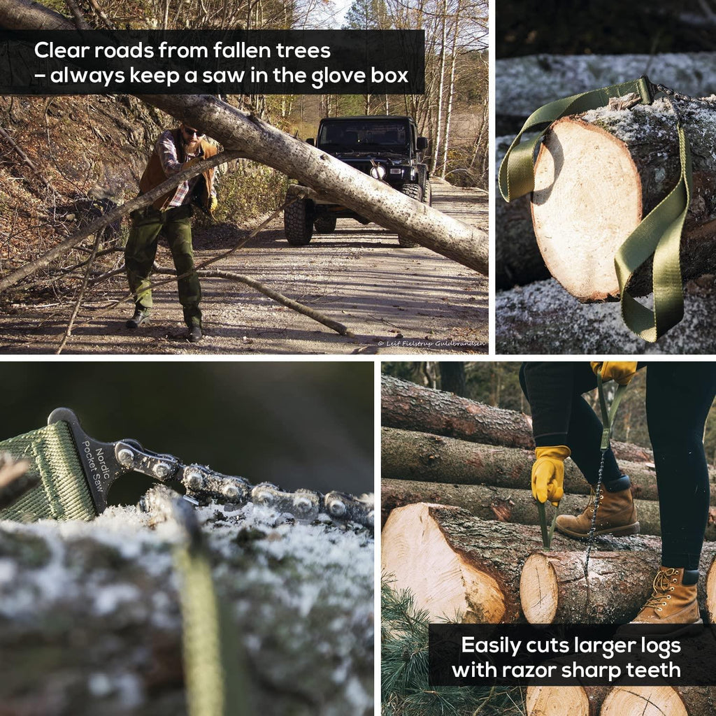 - The heavy-duty nylon handles provide a comfortable, safe grip, even when wet. This ensures you can maintain control while cutting. The outdoor pocket chainsaw also comes with a compact case. You can either wear it on your belt for quick access or store it in your backpack when not in use. Its design makes it easy to carry without taking up too much space.