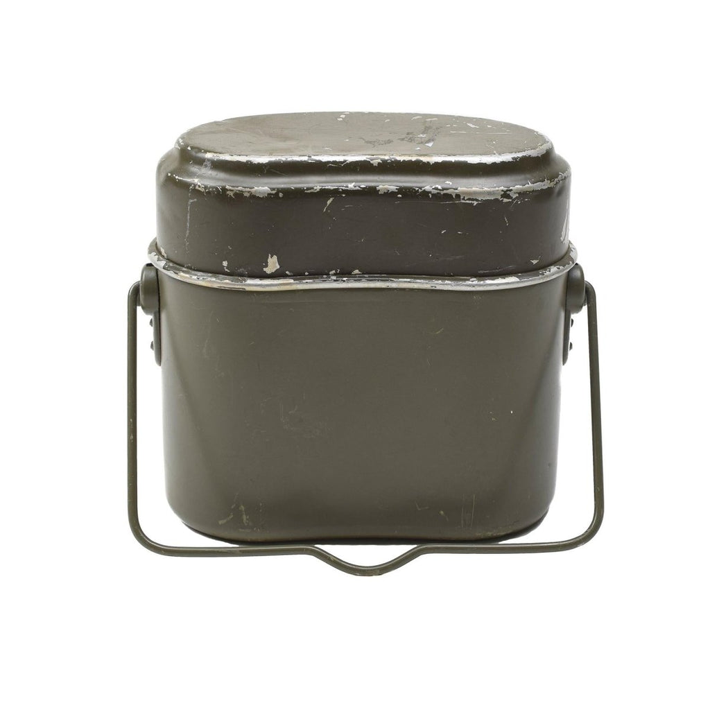 • The Austrian mess kit features high-quality aluminum, known for its durability and excellent heat distribution. This material allows food to cook evenly, making meal preparation simple and efficient. The two-in-one design includes a pot with a lid that doubles as a separate pan, giving you multiple cooking options without extra weight.