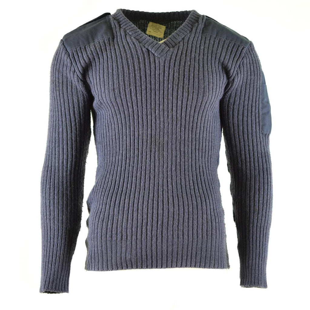 The gray/blue color of the jumper is a traditional military color scheme, and it provides a classic, understated look that is both stylish and functional. The jumper features a durable and sturdy construction, with reinforced elbow and shoulder patches that provide extra durability and protection in high-wear areas.