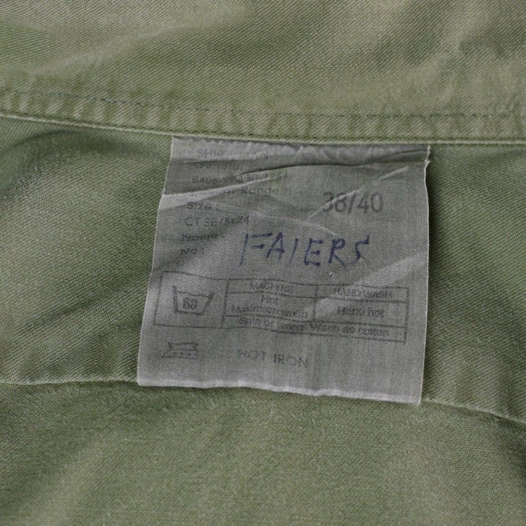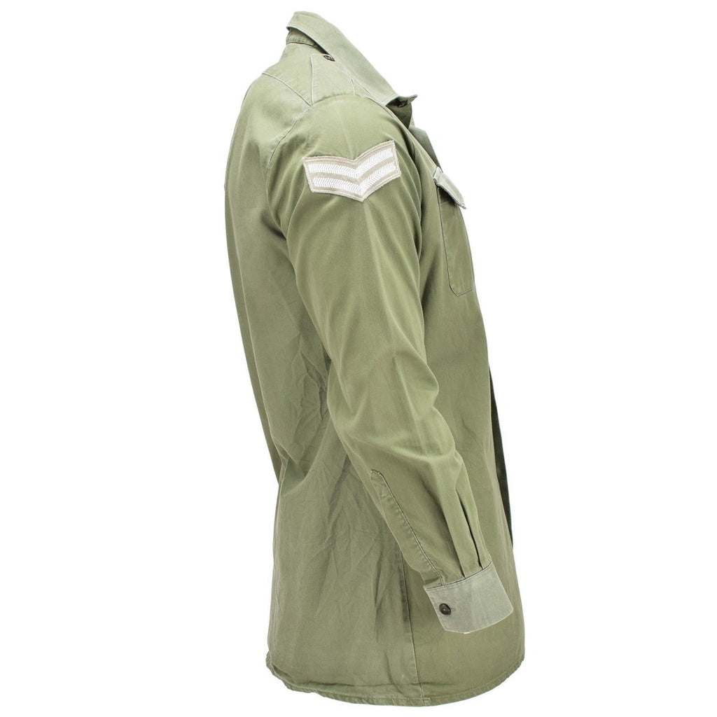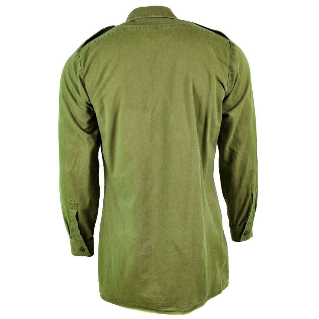Introducing the authentic British formal military shirt in olive, a timeless garment for formal occasions. With its long sleeves, button cuffs, epaulets, and chest pockets, this shirt exudes elegance.