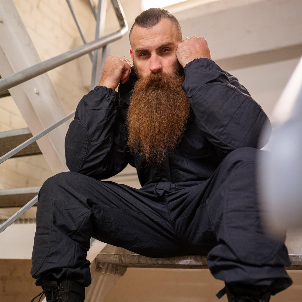 This coverall suit with a hood and zippers is an original British Military Police black coverall water flame-resistant jumpsuit. It is designed with adjustable ankles and cuffs, reinforced knees and elbows, and made from water-repellent, flame-resistant material for maximum protection and durability.