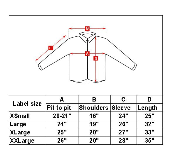 | Pit to pit | Shoulders | Sleeve | Length | |