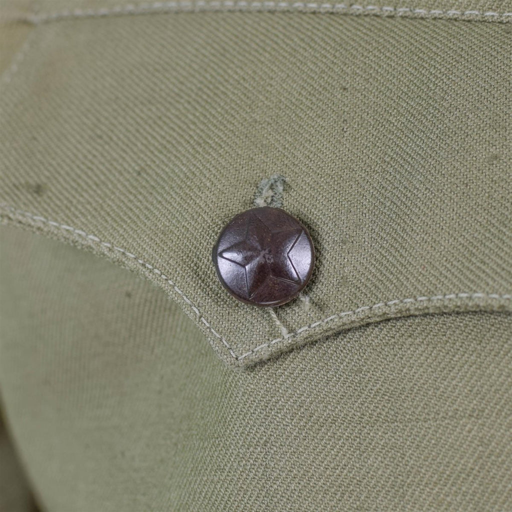 Original Bulgarian Army Olive vintage khaki shirt. A classic and authentic military garment designed for durability and style. This genuine Bulgarian army surplus long sleeve shirt jacket offers a blend of functionality and a timeless military aesthetic.
