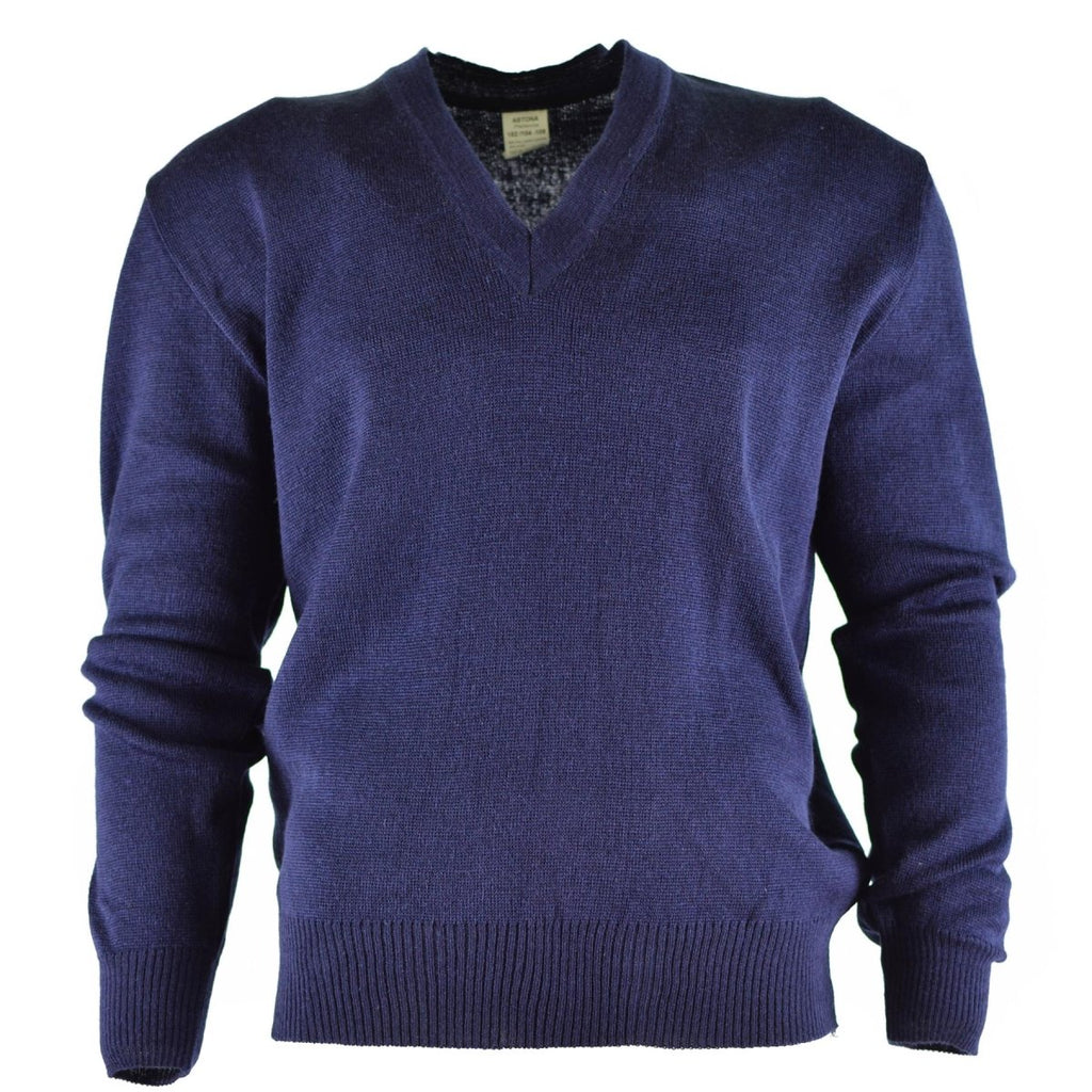 Original Czech army Sweater Jumper Blue Wool V-neck military surplus NEW