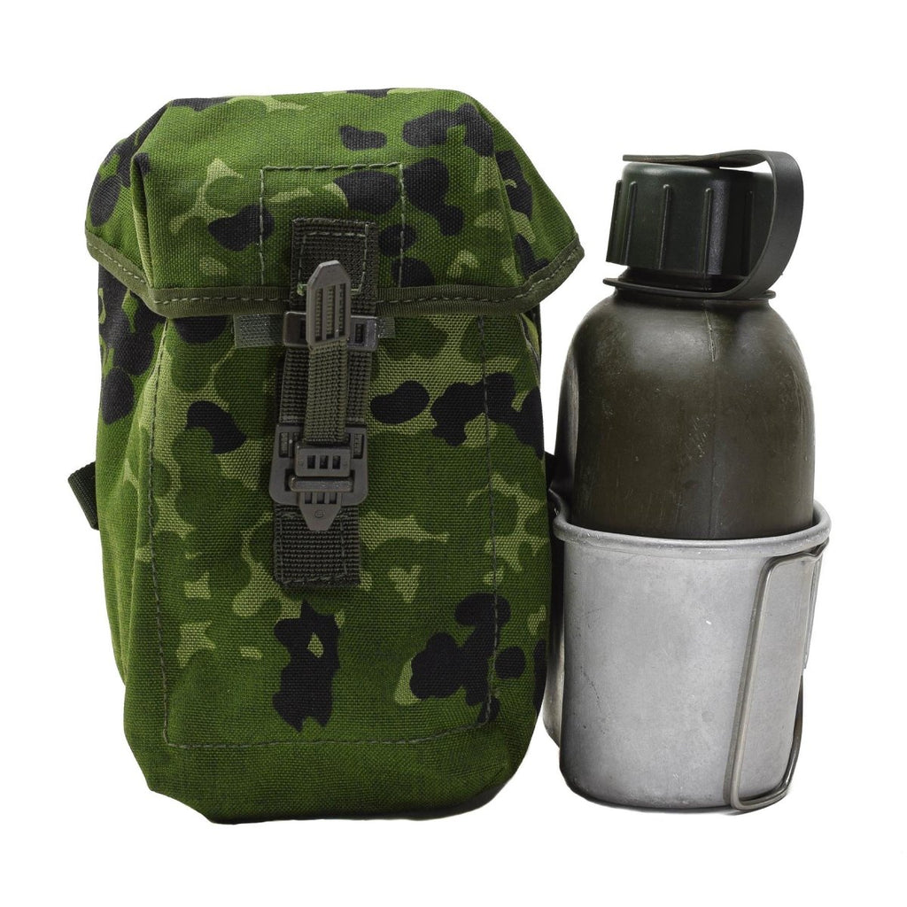 - This original Danish military flask is designed for maximum functionality and reliability. Encased in a durable M84 Danish camouflage pouch, this flask offers both protection and practicality. The aluminum canteen ensures safe storage of liquids, making it perfect for long missions or adventures.
