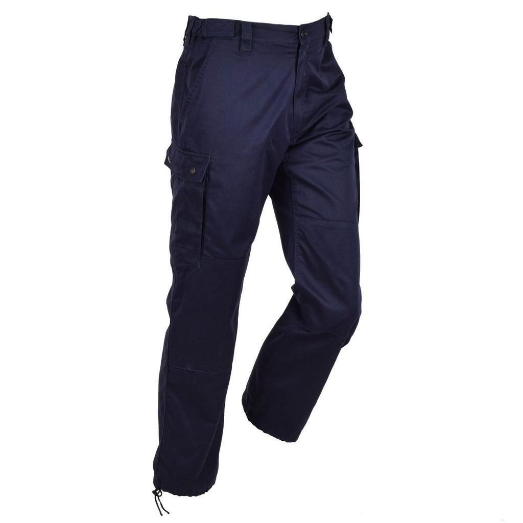 • A zip fly ensures quick and hassle-free wear, while an elasticated and adjustable waist allows a secure and customizable fit. Reinforced knees add extra durability, making these pants ideal for physically demanding environments. Large cargo pockets provide ample storage for essentials, offering both convenience and practicality. The classic design reflects authentic military style, adding a rugged yet polished touch to any outfit.
