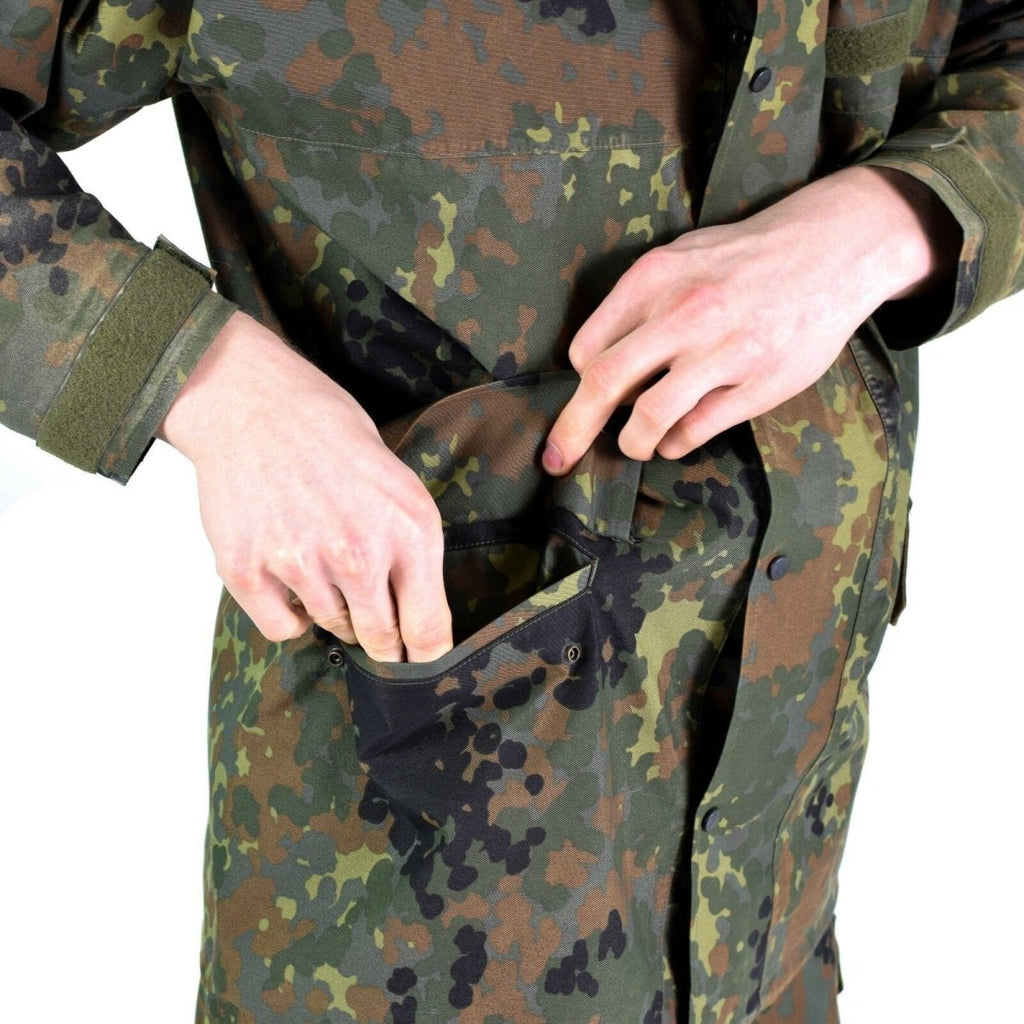 - One of the standout features of this jacket is its flecktarn camouflage pattern. This distinctive design is perfect for blending into woodland environments, making it an ideal choice for hunting and outdoor activities. The camouflage not only aids in concealment but also provides a rugged, military-inspired look.