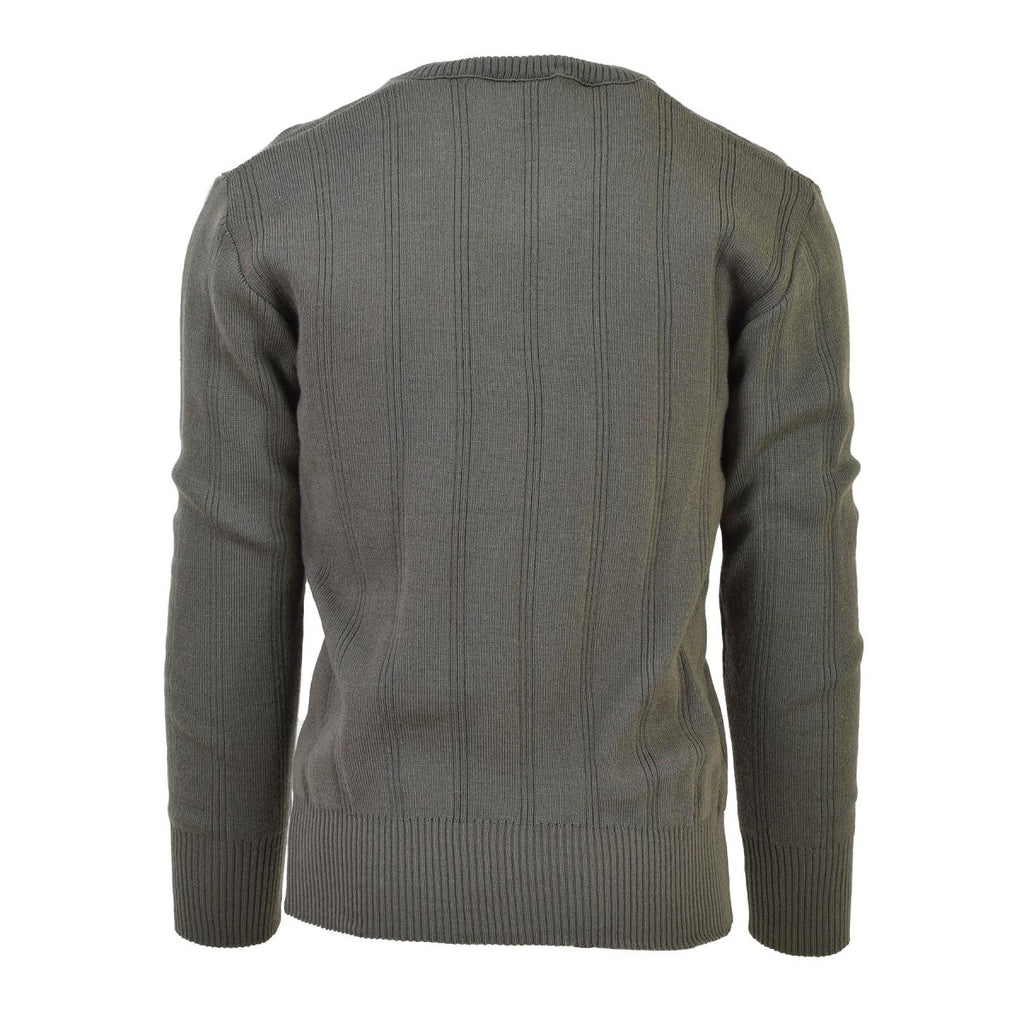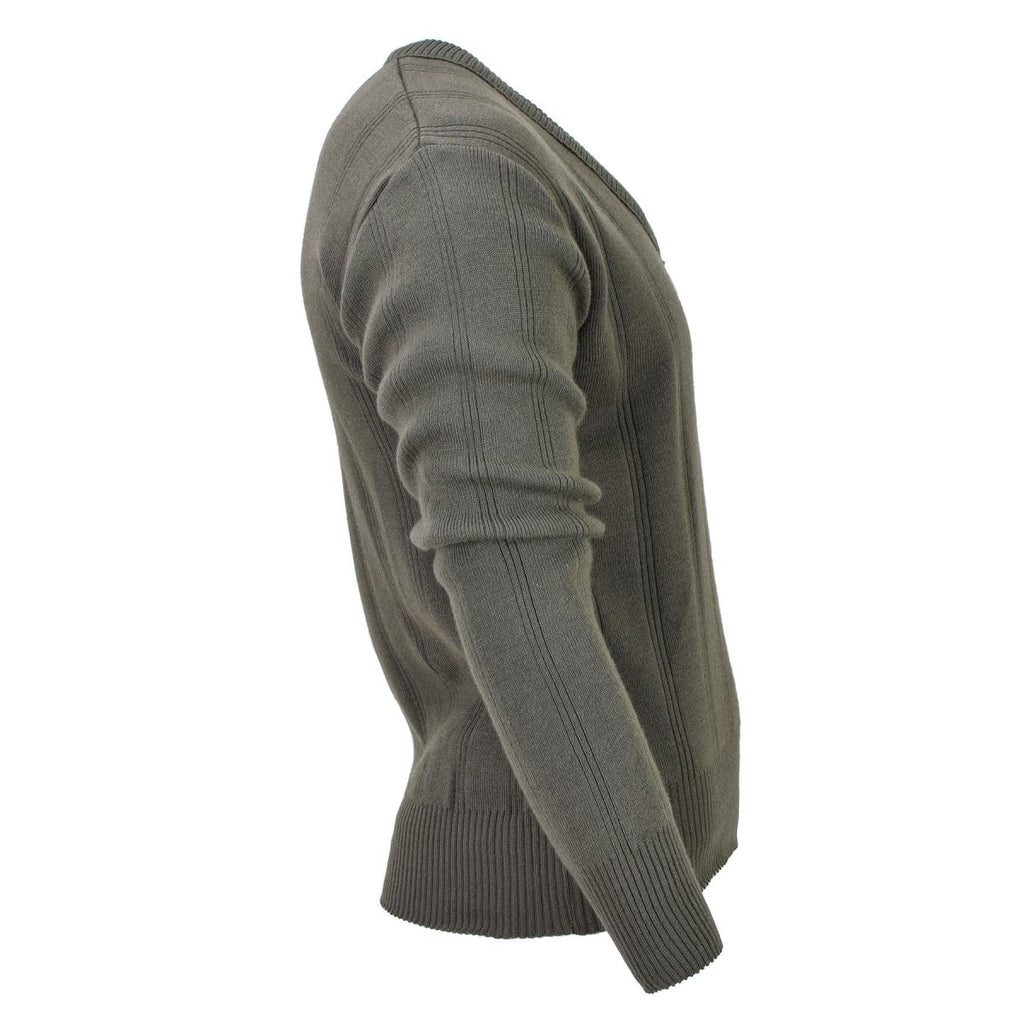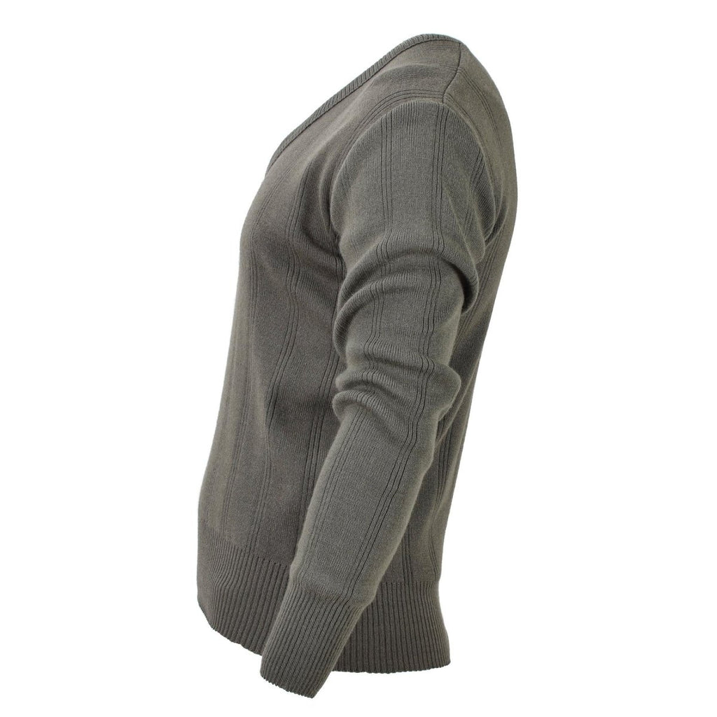 - Crafted meticulously from high-quality wool. This grey sweater features a distinguished V-neckline that adds an element of sophistication to any attire. Its rib-knitted cuffs and waistline not only ensure a secure fit but also provide warmth during chilly weather. Making it an ideal choice for various seasons.