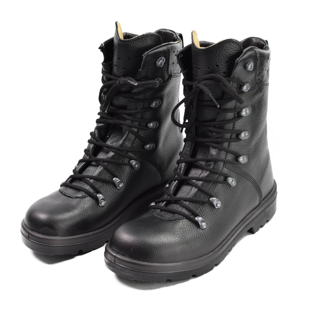 The "Original German Army black leather field boots" are a testament to German engineering and quality. Whether you're in the field, on a mission, or simply seeking reliable footwear for outdoor adventures, these boots deliver. With their water-resistant design, your feet stay dry even when conditions are wet and challenging. The anti-static feature ensures your safety in diverse environments. Crafted from real leather, these boots offer unbeatable longevity and are ready to tackle any task. Plus, their classic black color adds a touch of professionalism to your look.