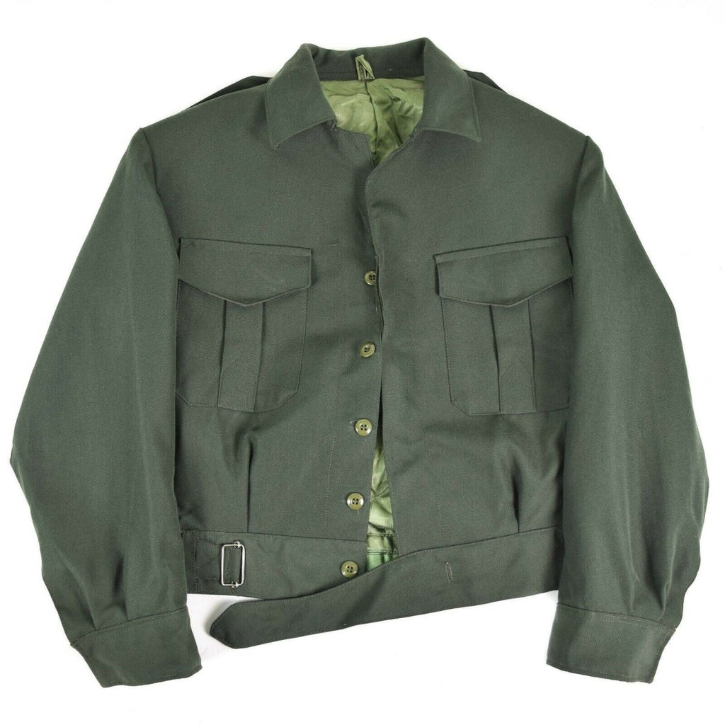 - The green Eisenhower jacket features chest pockets for easy access and storage. These pockets add a functional aspect to the jacket while maintaining its military-inspired design. You can store essentials like keys or a phone with convenience. The jacket also includes epaulets on the shoulders, enhancing its military aesthetic and allowing space for insignia or patches.