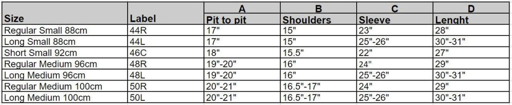 | Regular Medium 96cm | 48R | 19"-20" | 16" | 24" | 29" |