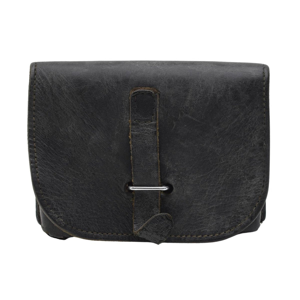 Original Italian Military Magazine Pouch Leather Metal Buckles small Black
