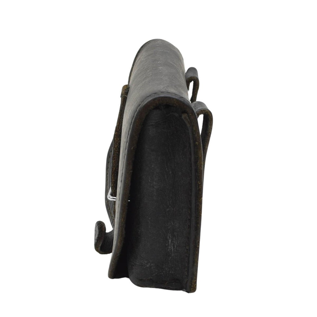 • This original Italian military magazine pouch is made from high-quality black leather, offering both strength and style. The secure metal buckle closure ensures that your items stay safe, while the sturdy construction adds reliability in any situation.