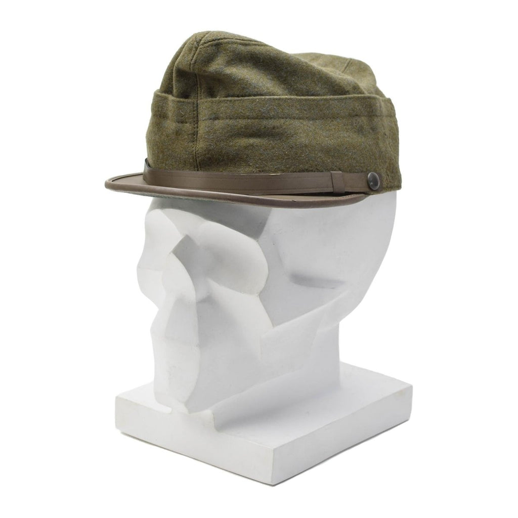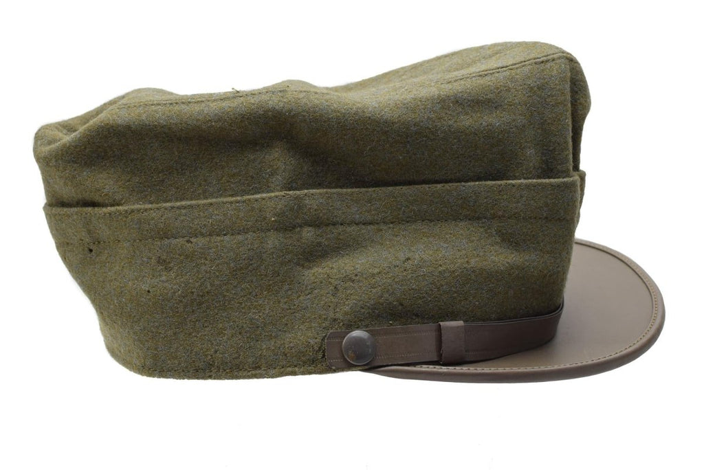 Introducing the vintage military field cap, a unique and stylish accessory crafted from lightweight olive wool material. This original Italian military snapback cap blends durability and comfort. Offering an authentic look for military enthusiasts or those seeking a classic, rugged style.