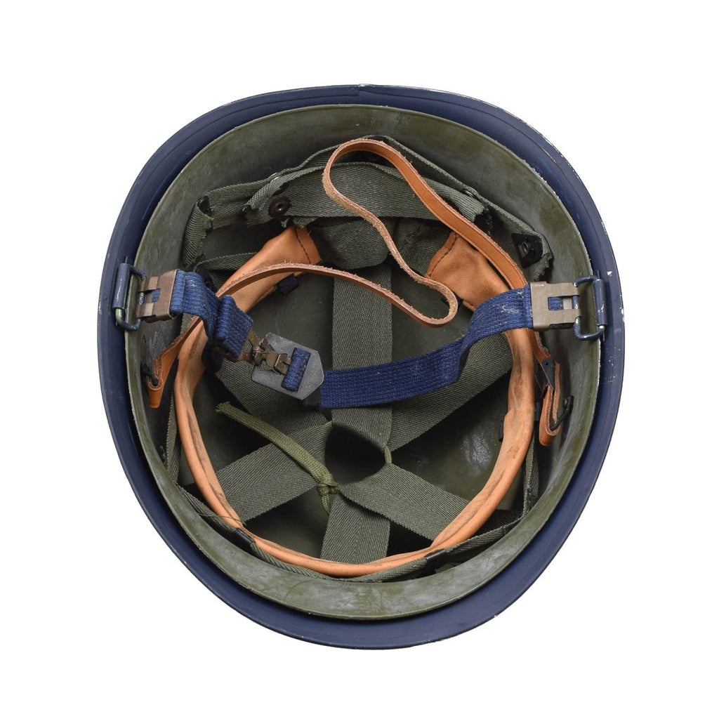 Elevate your collection of military memorabilia with this distinctive Original Military Belgian Steel Helmet M51 in striking blue. This helmet, complete with its inner PVC liner, is not just a piece of history but also a symbol of authenticity and functionality.