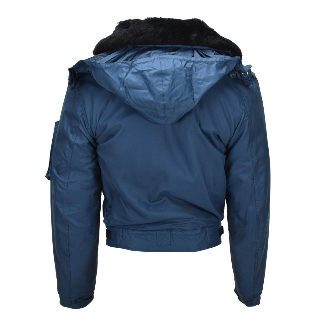 Authentic RCAF (Royal Canadian Air Force) pilot jacket from original military surplus. Designed for aircrew, this short-length flight jacket combines warmth, comfort, and functionality. Made from durable nylon fabric with a warm quilted lining and detachable faux fur collar, it provides reliable protection against wind and cold. Features include a heavy-duty front zipper, sleeve pocket with zipper, adjustable waist straps, and internal cuffs. Its distinctive blue color and vintage military design make it perfect for collectors, aviation enthusiasts, or anyone looking for an authentic military-style jacket.