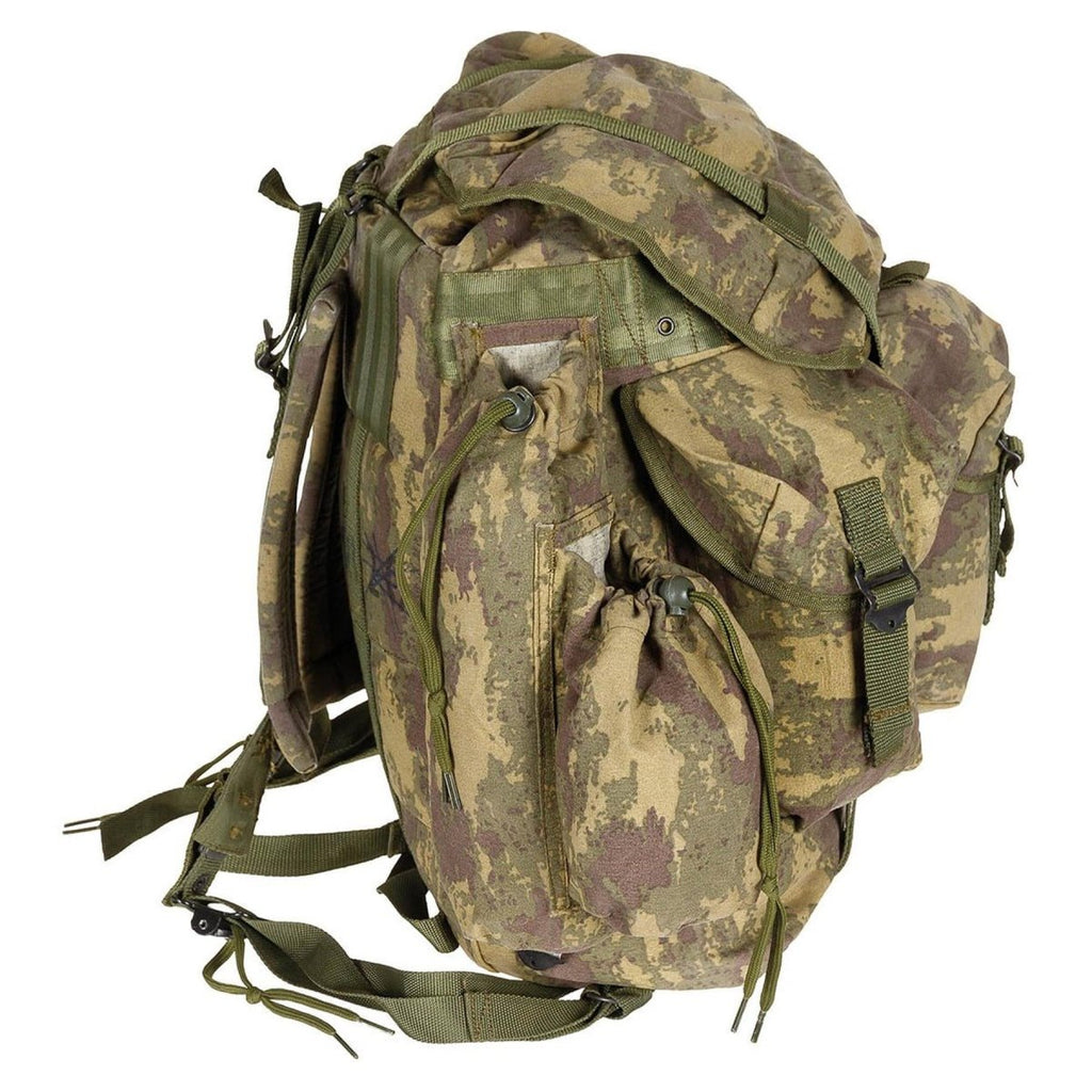 Upgrade your gear with this genuine Military Surplus Camouflage Backpack, expertly crafted to withstand rigorous military occasions. Made in Turkey from 100% durable nylon, this original piece combines functionality and rugged style. Designed with practicality in mind, it features three spacious front pockets, secured by Alice webbing drawstring closures and a flap cover, perfect for organizing your essentials. The adjustable nylon shoulder straps and strap attachment type ensure a comfortable fit, while the secure buckle closure keeps your belongings safe. This backpack's camouflage pattern adds an authentic military touch, making it ideal for outdoor adventures or tactical missions. Whether you’re hitting the trails or heading into action, rely on the resilience and utility of this military-grade backpack. Shop now and experience the unmatched quality of a military-tested accessory.